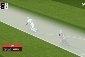 半自动越位识别系统系统检测到了一次极其细微的越位,越位部位是肩膀的一部分,而这一细节在初始的虚拟回放图像中确实可见。