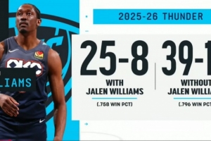 Shams:杰伦·威廉姆斯遭遇左腿筋一级拉伤 将每周接受伤情评估