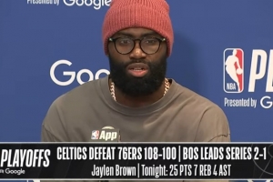 体育资讯4月25日讯 NBA季后赛首轮G3,凯尔特人108-100战胜76人,大比分2-1领先,赛后布朗接受了媒体采访,以下为采访全文。