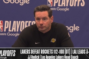 体育资讯4月25日讯 NBA季后赛西部首轮G3,湖人加时112-108战胜火箭,大比分3-0领先。赛后雷迪克接受了媒体采访,以下为采访全文。