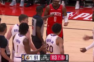 GIF-克内克特三分命中~!篮下有冲突~!!蒂耶罗和霍勒迪被驱逐了~!!
