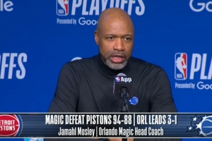 体育资讯4月28日讯 NBA季后赛首轮G4,魔术94-88力克活塞,系列赛大比分3-1领先,魔术主帅莫斯利赛后接受了媒体采访,以下为完整版采访内容。